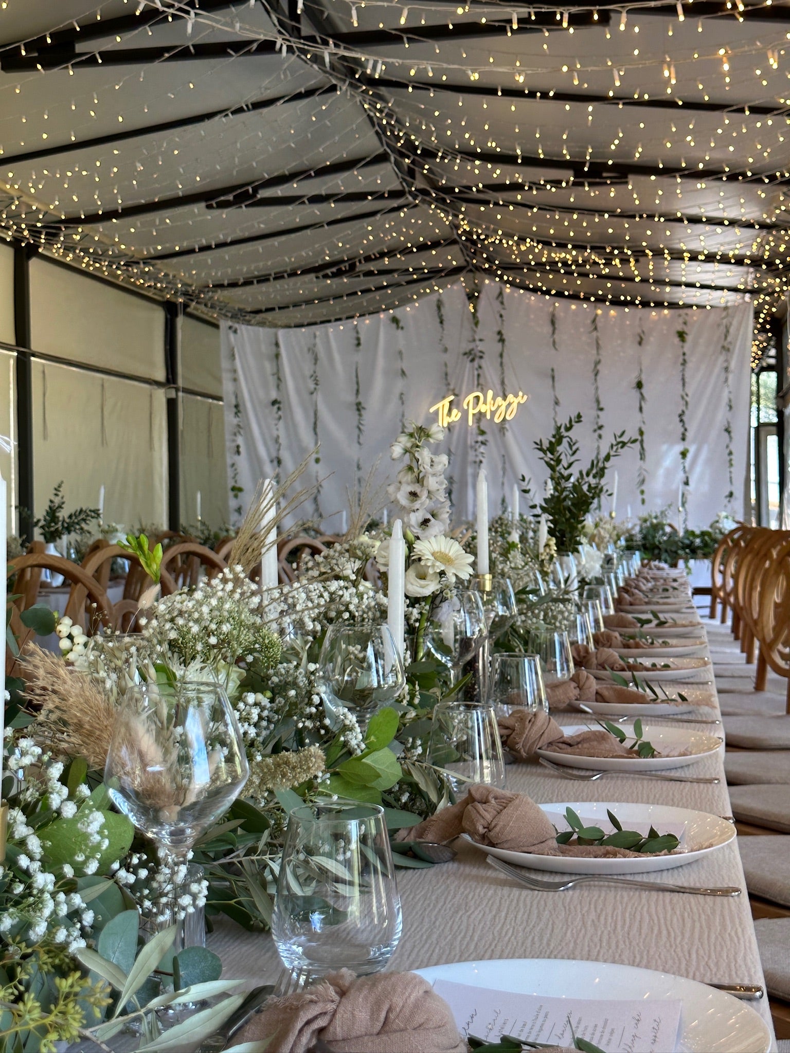 Du premier échange à l’installation, Morgane et Alex conçoivent une mise en scène raffinée et équilibrée : mobilier, compositions florales, tables, éclairage, signalétique…